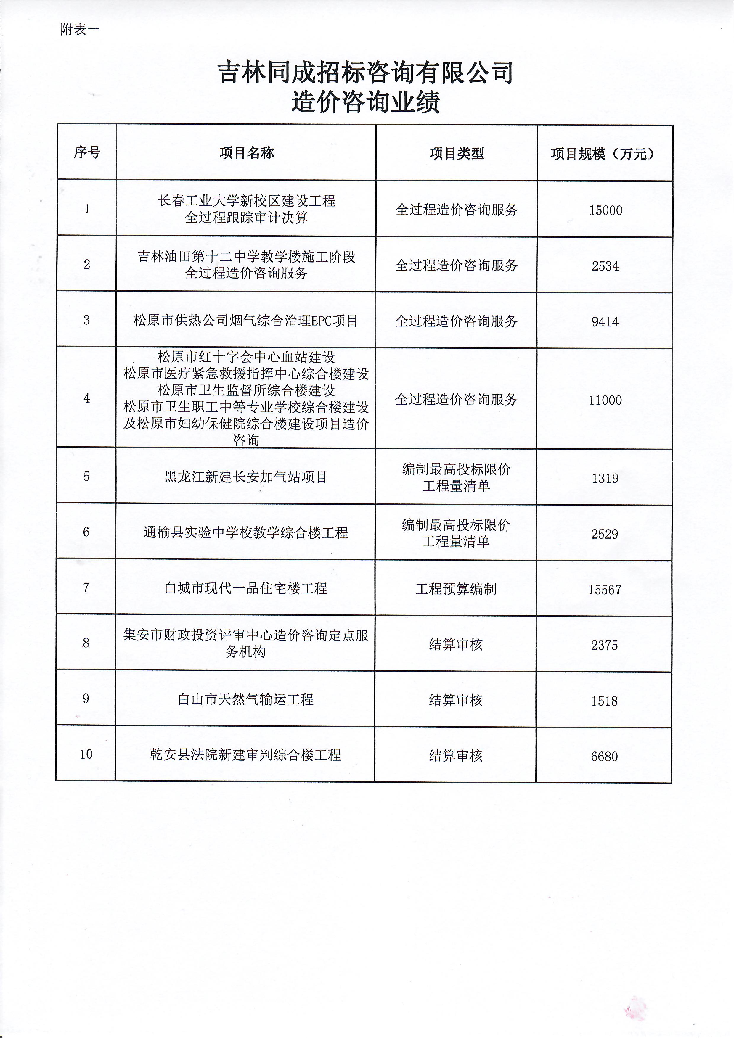 • 造價咨詢業(yè)績